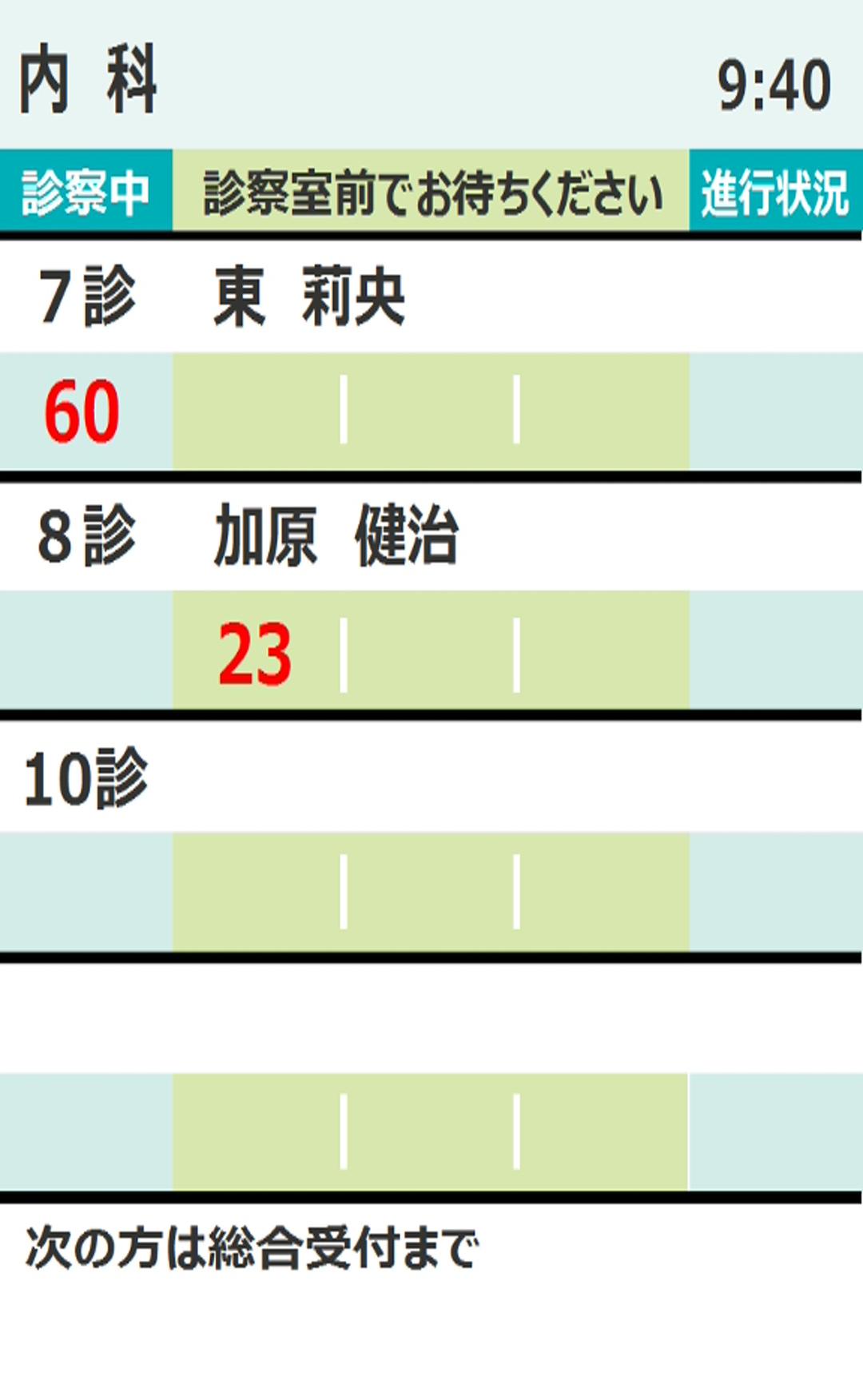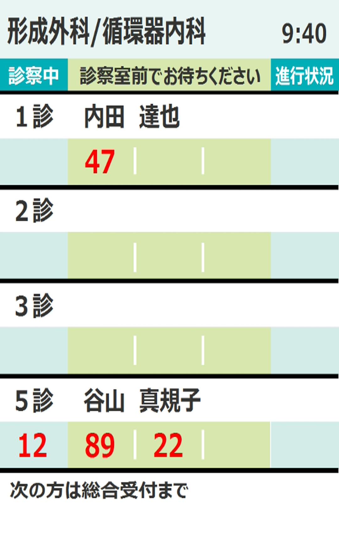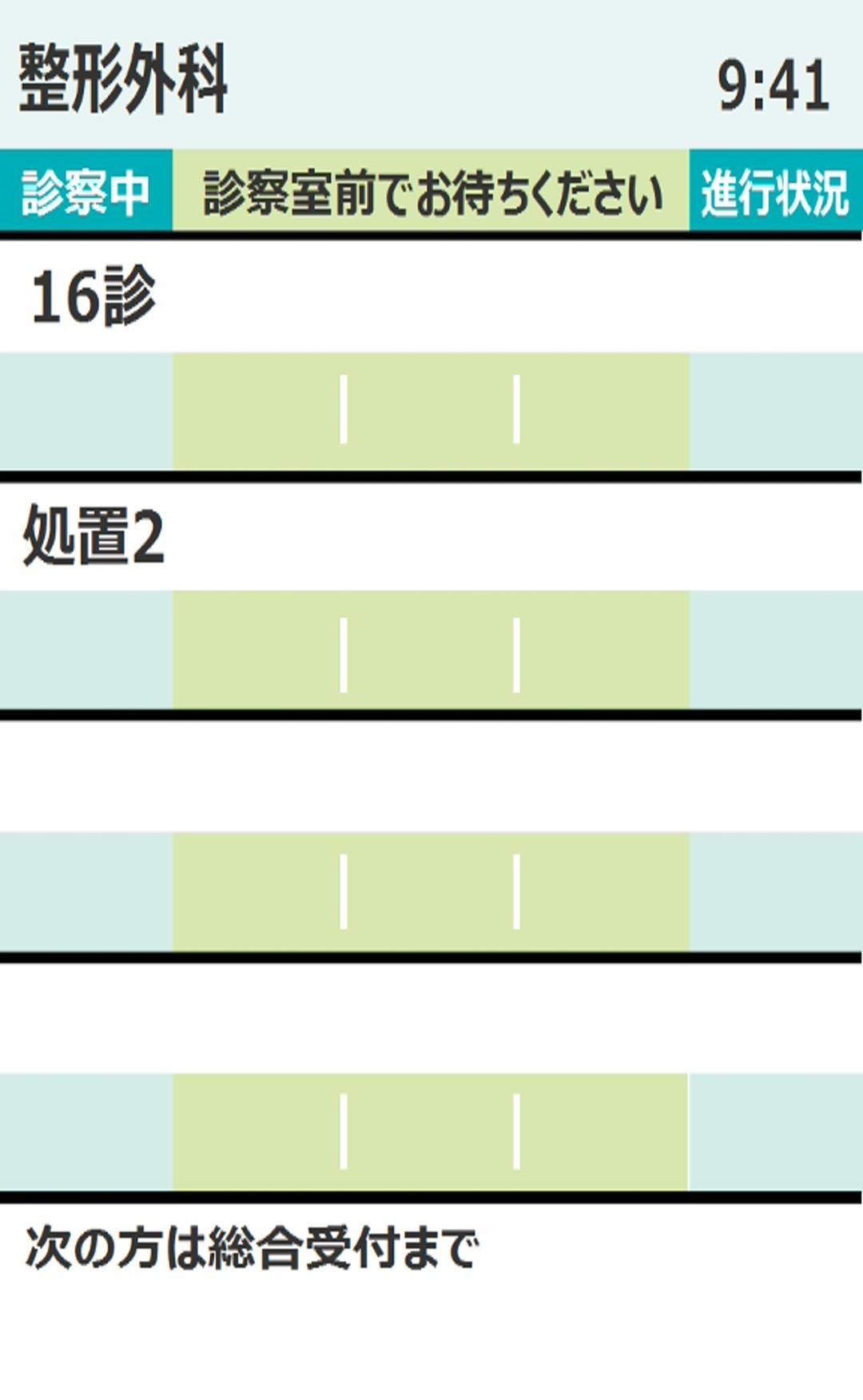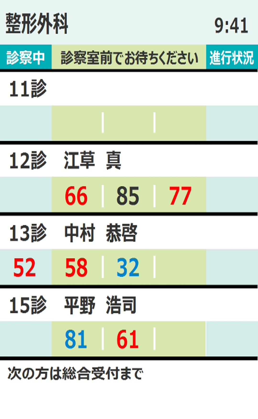 最新の待ち状況画面が順番に表示されます。